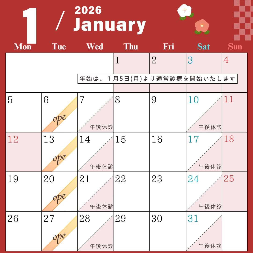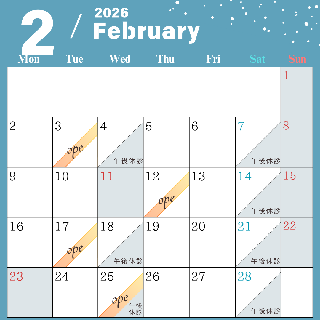 休診日:水・土曜の午後、日曜、祝日 ★手術は火曜日の昼に行っております