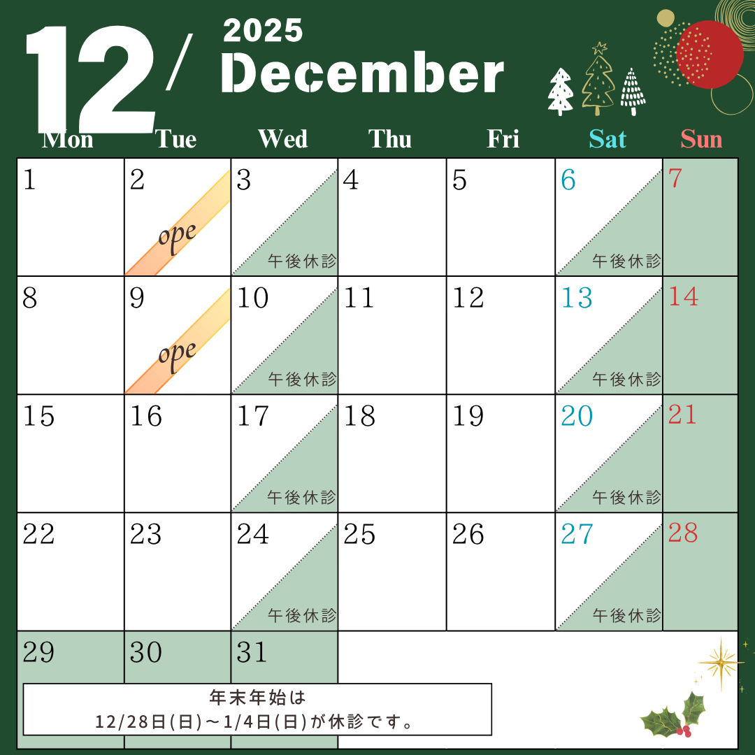 休診日:水・土曜の午後、日曜、祝日 ★手術は火曜日の昼に行っております